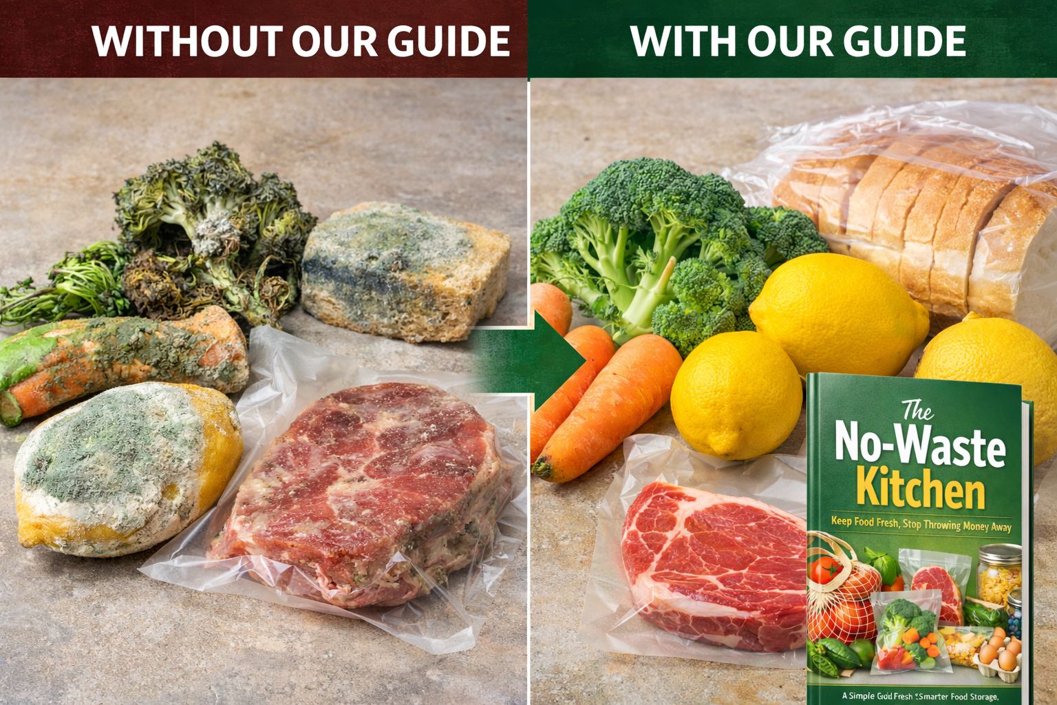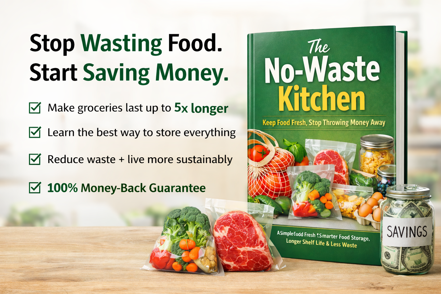 The No-Waste Kitchen Guide shows you exactly how to store every type of food the right way, so it lasts longer, tastes better, and saves you money every week.